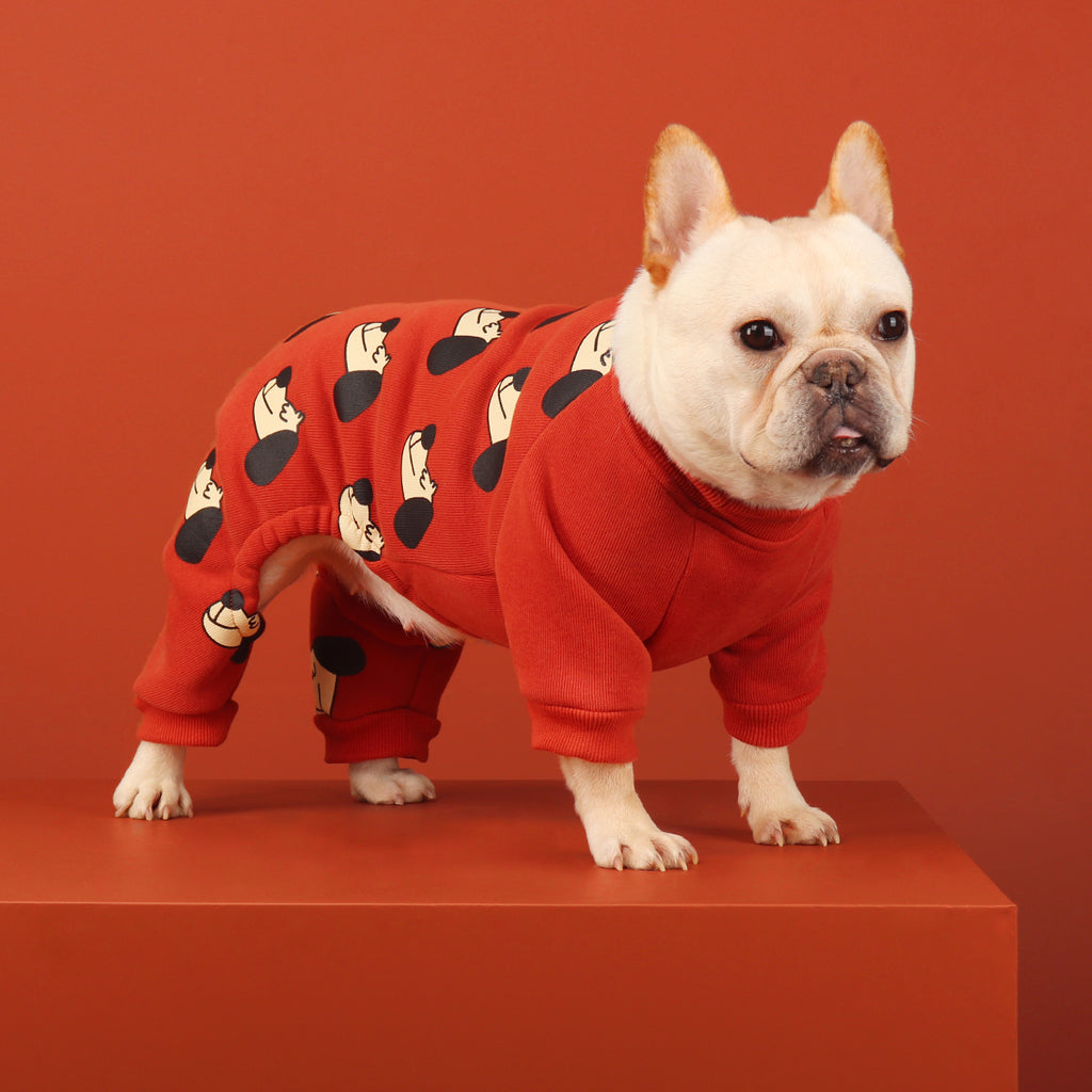 Winter Plush Fleece Four-Legged Dog Hoodie/Sweaters - Red